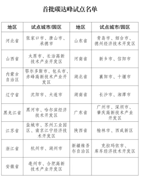 國(guó)家碳達(dá)峰試點(diǎn)建設(shè)方案